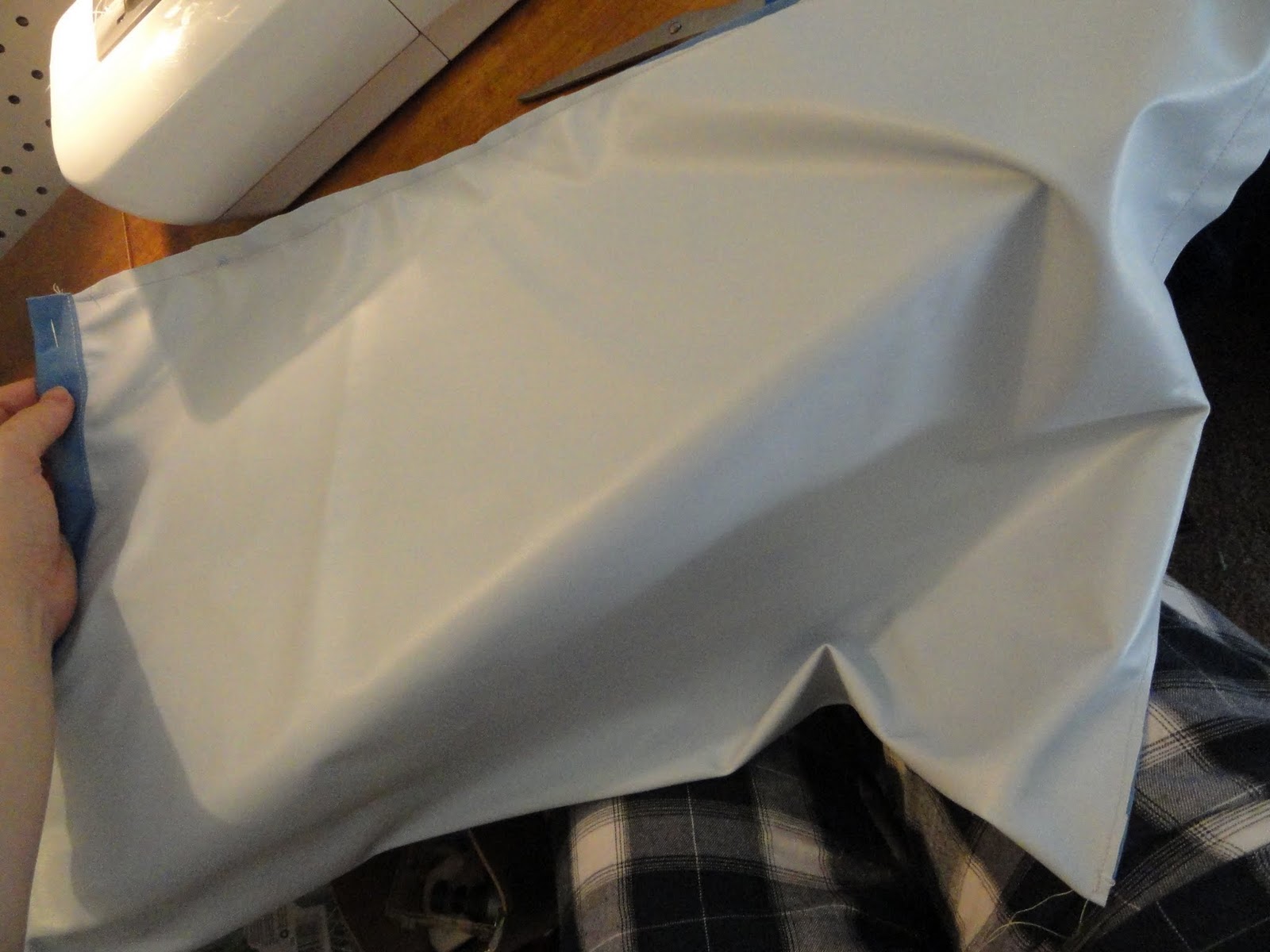| For my wetbag, I just used the one layer of Pul. I started out by cutting a piece of Pul for about the size that I wanted my wetbag to be. |