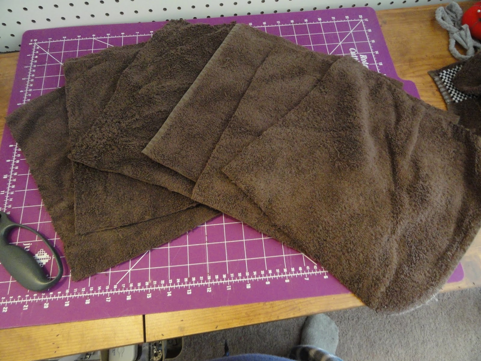 -Old towels (I was able to get 6 terry cloth pieces from one big towel)