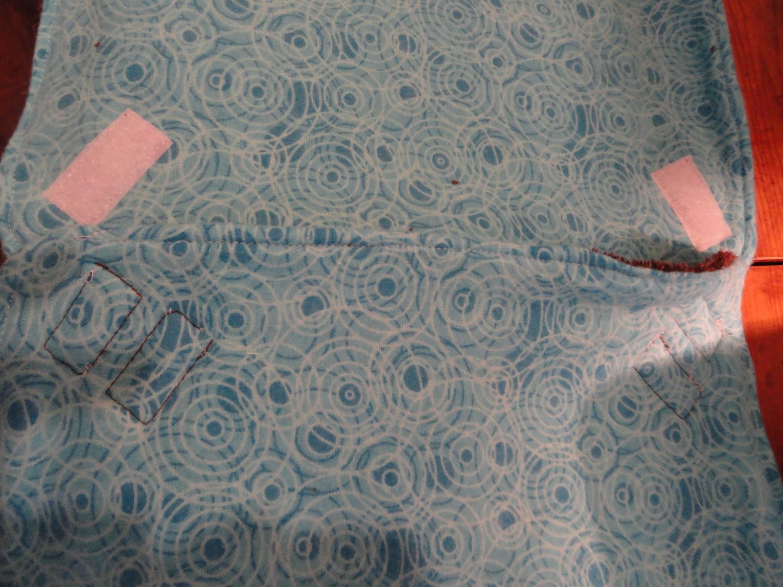 Alternative to snaps- Hook & Loop: You can just do this project the same way, but use hook & loop instead of snaps. The only difficulty with this is that you NEED to make sure that you don’t leave the tough side (vs the soft fuzzy side) undone when it goes through the washer/dryer. Otherwise all the dryer fuzz ends up in your hook & loop and make it less effective. One way to do this is to imitate the laundry tabs on cloth diapers. One drawback to doing hook & loops is that it’s a lot more time consuming than snaps. These took me forever to sew all the hook & loop on.