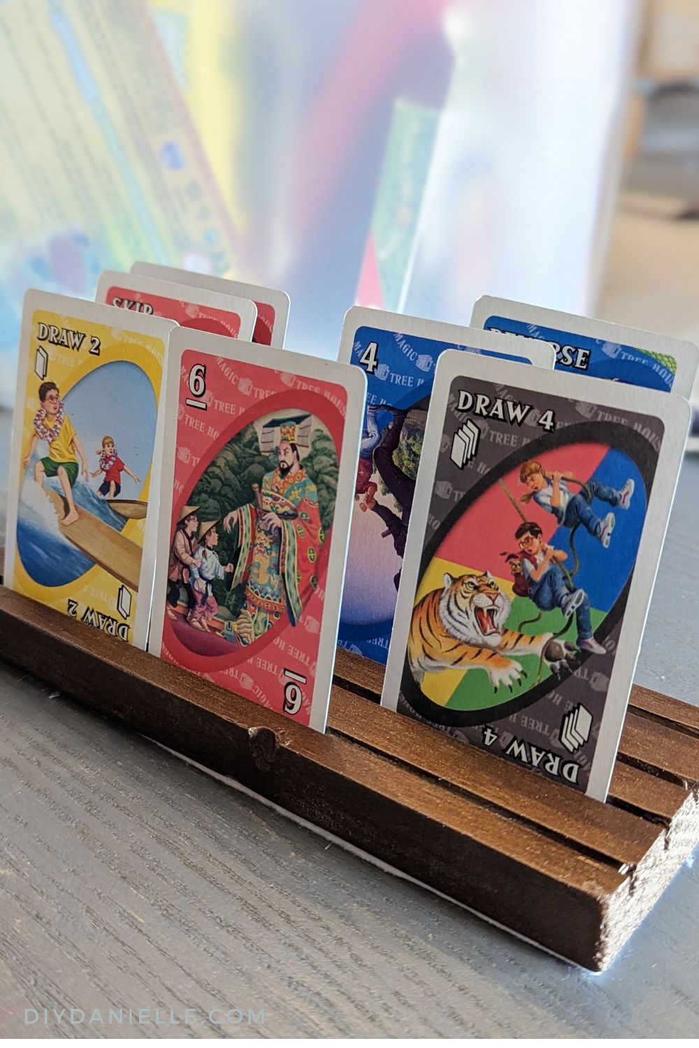 We decided to get the family an Arcade1Up table this year for Christmas and while it has some neat options to cover the cards when it’s your turn, I wanted to make covers that would also function as DIY Card Holders. These are perfect for little hands who have a hard time holding a lot of cards- particularly when you’re dominating at Uno!