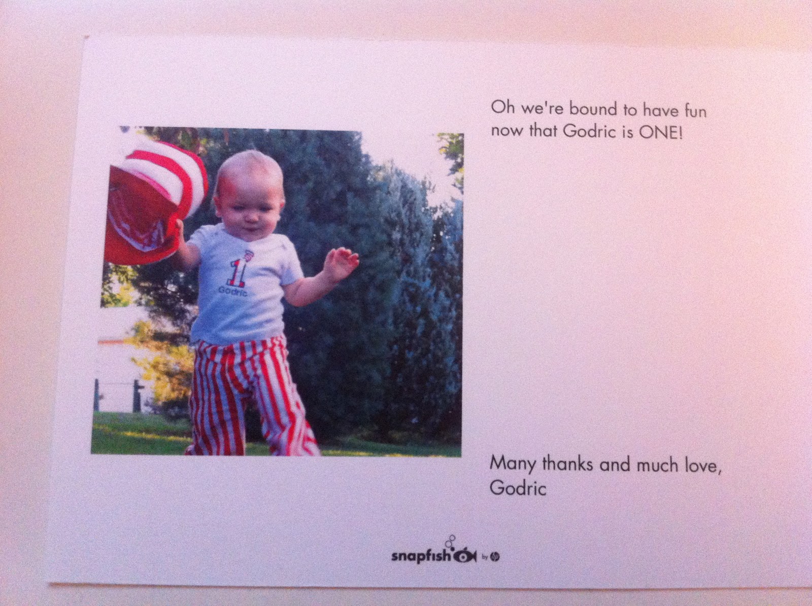 - Thank You Cards: We would’ve liked to go green with these, but alas… I feel like handwritten thank you cards are important. As an alternative to a card that people would just throw away, we decided to print one big picture of Baby G on card stock and leave the back blank to write a thank you note.