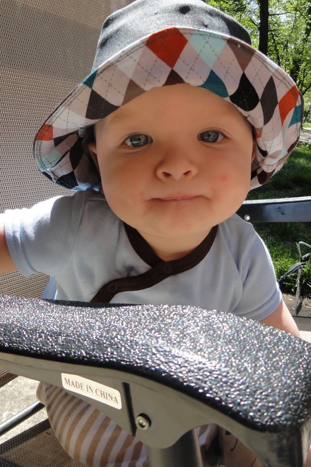 This is the tutorial I used, from Sew Much Ado, and it’s excellent. Besides normal “me” stuff, I had a pretty easy time following the tutorial. The hat is supposed to be for a toddler, but Baby G has a huge head like his mom and dad (18.11″ at 6 months old, somewhere in the high 90th percentile) so it still works for him.
