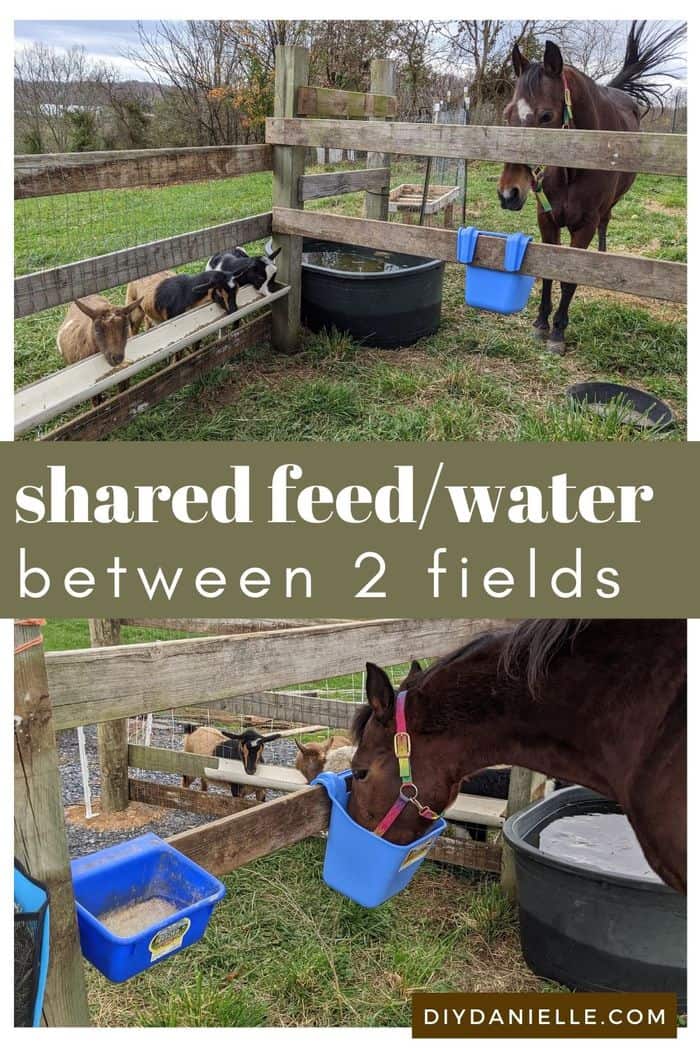 To streamline my feeding tasks, I added an area where my horse field and goat/sheep field met. This is somewhat temporary as I plan to expand this field as we clear the land in the back, but it’s working pretty well right now.